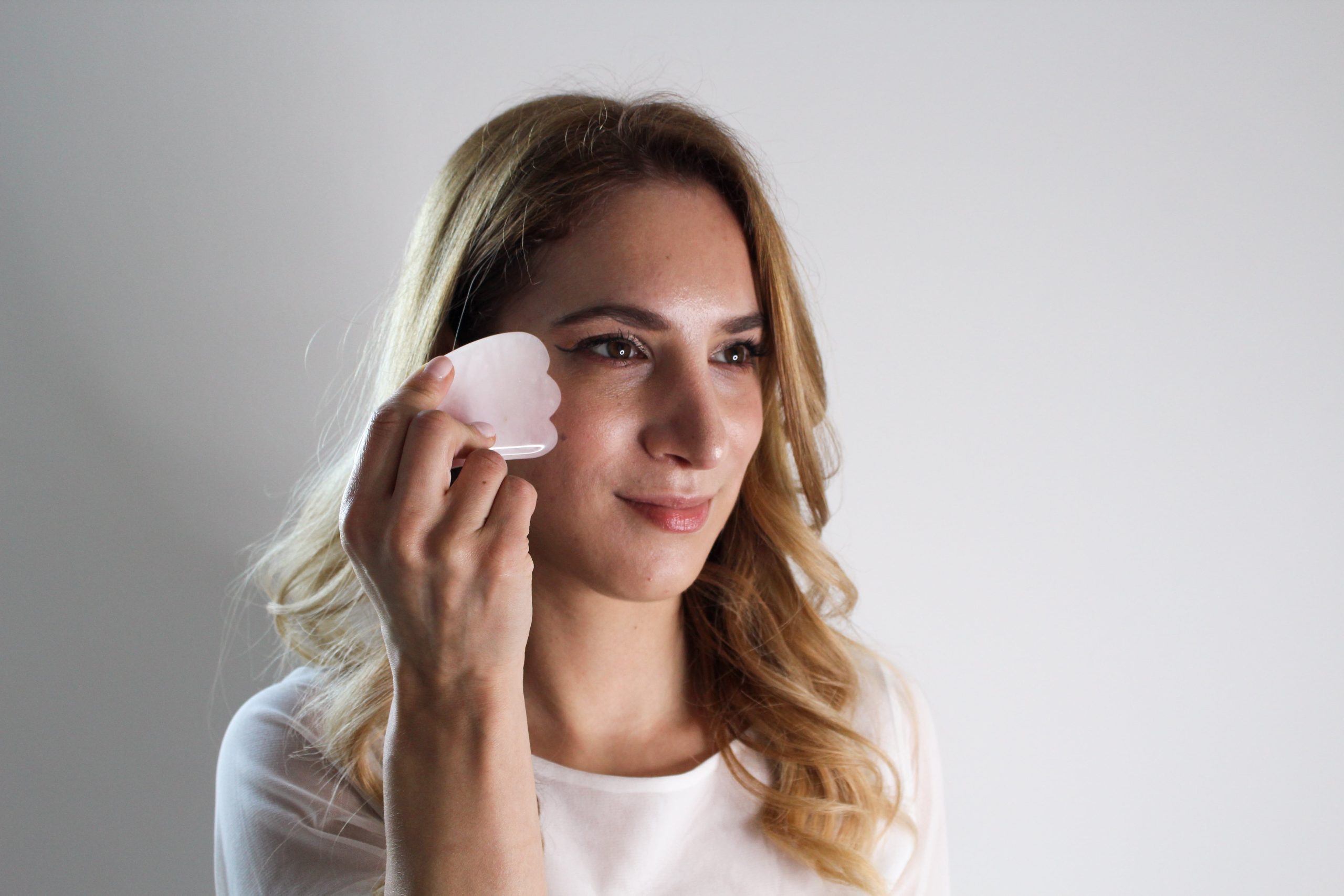 - Naučila se boš masažnih tehnik z rokami, guasho, obraznim rolerjem in jedilno žlico